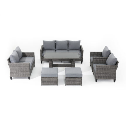 Wicker Outdoor Conversation Set with Lift-top Table Patio Sofa and Dining Table Set