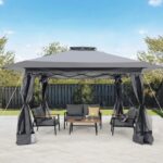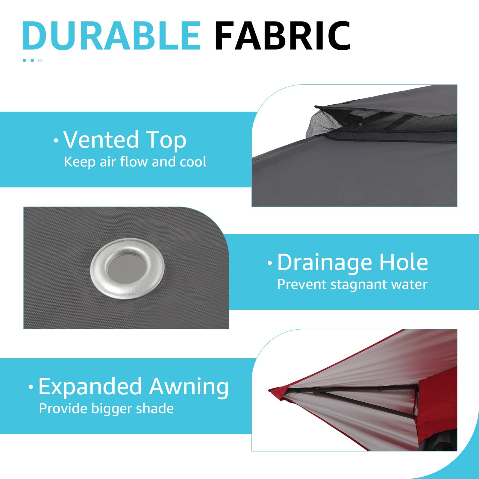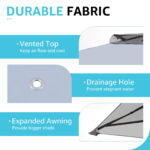 - Double Roof Design-2-tier canopy top with a wind vent, helps to enhance the air circulation inside the gazebo and provides the gazebo with more stability. With 4 drain holes on the fabric, will not hold water, keeping this shelter always dry for a longer service