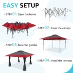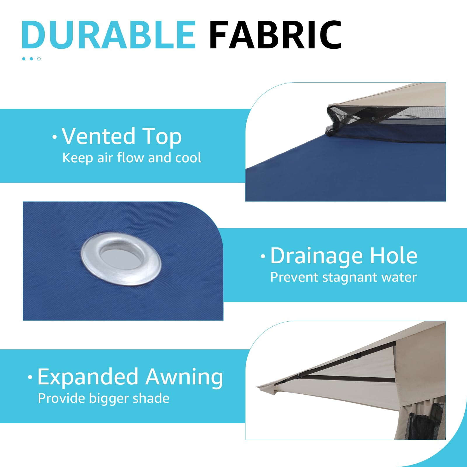 - Easy Setup & Wide Use-Setup is efficient and hassle-free, including all the necessaries and instructions, it’s easy installation and disassembly. This spacious gazebo is suitable for the home garden, playground, party, activities, camping, backyard events, etc.