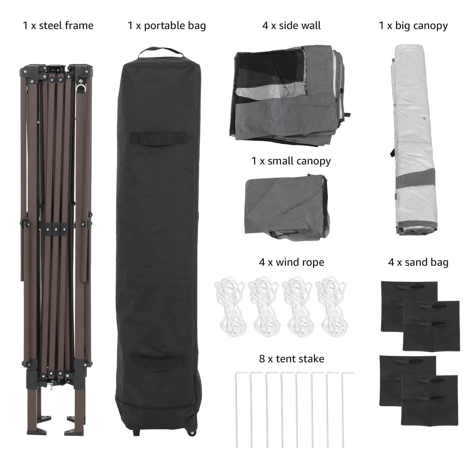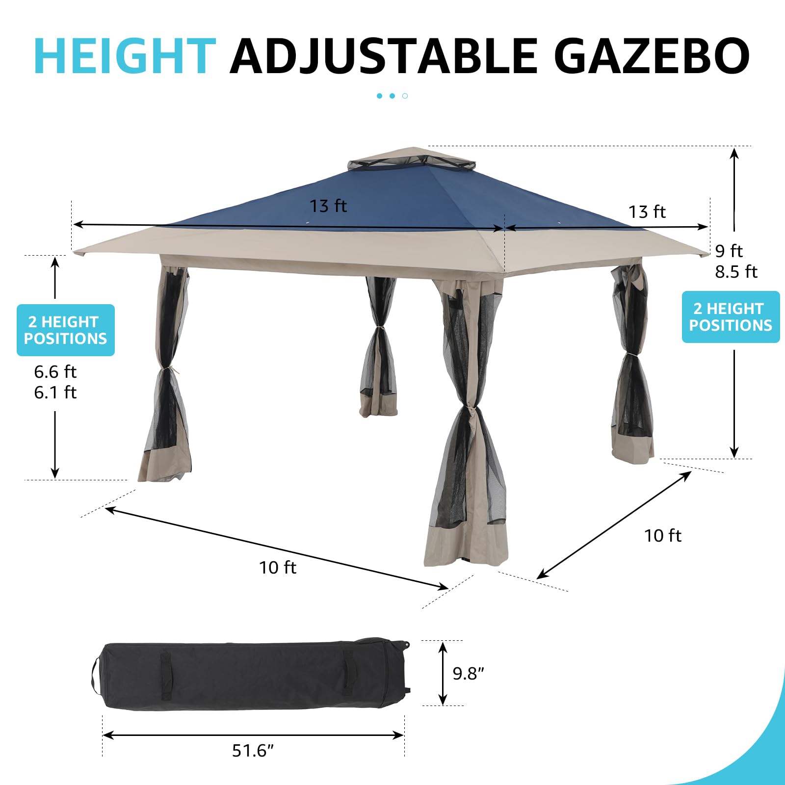 - Durable & Height Adjustable-Made of powder-coated steel frame and UV-protected 210D waterproof Oxford fabric, the outdoor pop-up gazebo tent is for all-weather use. Also, this patio shelter gazebo’s height can be adjusted in 2 positions, you can choose the height according to your need