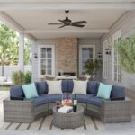 The Halo collection comes with Half Moon Design, premium olefin fabric, and handcrafted all-weather wicker. The elegant synthetic wicker is handwoven into complex patterns that give the patio furniture set its refined look. The striped pillows add a touch of elegance and style to your patio, garden, backyard, porch sunroom or pool.