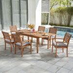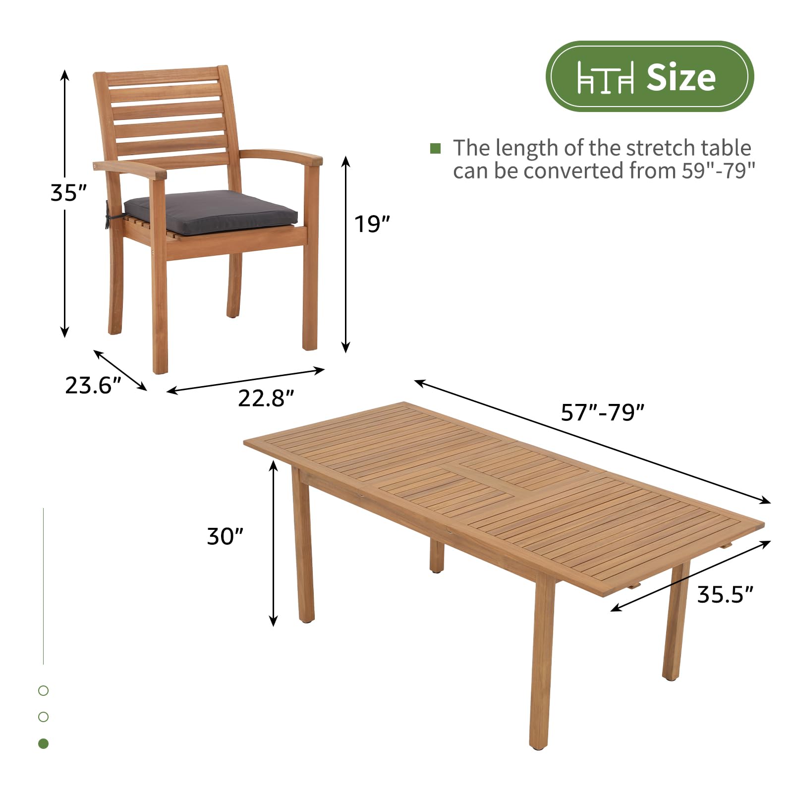 - FSC-Certified Wood: Our 7-piece outdoor dining set is constructed of sustainable FSC-certified acacia wood to ensure the chair can hold up to 300 lbs! The surface is coated with high-grade oil paint making the patio table and chairs weather-proof and built to last.