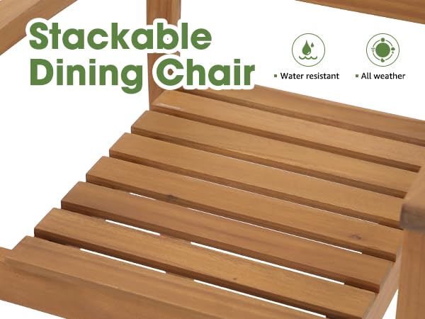 - Stackable Wooden Chairs: To maximize your outdoor/indoor space, when not in use, these patio dining chairs can be directly stacked together for space-saving storage.
