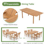 7 pcs Outdoor Wood Dining Set, Extendable Rectangular Table and 6 Stackable Chairs