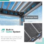 - Superior All-aluminum Structure: The frame and louvered roof are all made of powder-coated aluminum, ensuring lightweight but rust-resistant, UV-protected, which is suitable for long-term outdoor use. The Patiorama adjustable louvered pergola is equipped with pre-drilled bases and expansion anchor bolts, allowing for easy installation on concrete surfaces. Moreover, it is designed to withstand winds up to 60 MPH.