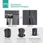 - Bugs Netting & Privacy Curtains: The pergola louvered roof comes with detachable curtains and netting, providing weather resistance against wind, rain, and sunlight, while also protecting against mosquito bites and ensuring privacy. Each post of the adjustable pergola is equipped with both middle and lower fixed straps to prevent the curtains and nets from flying around during heavy winds or rain.