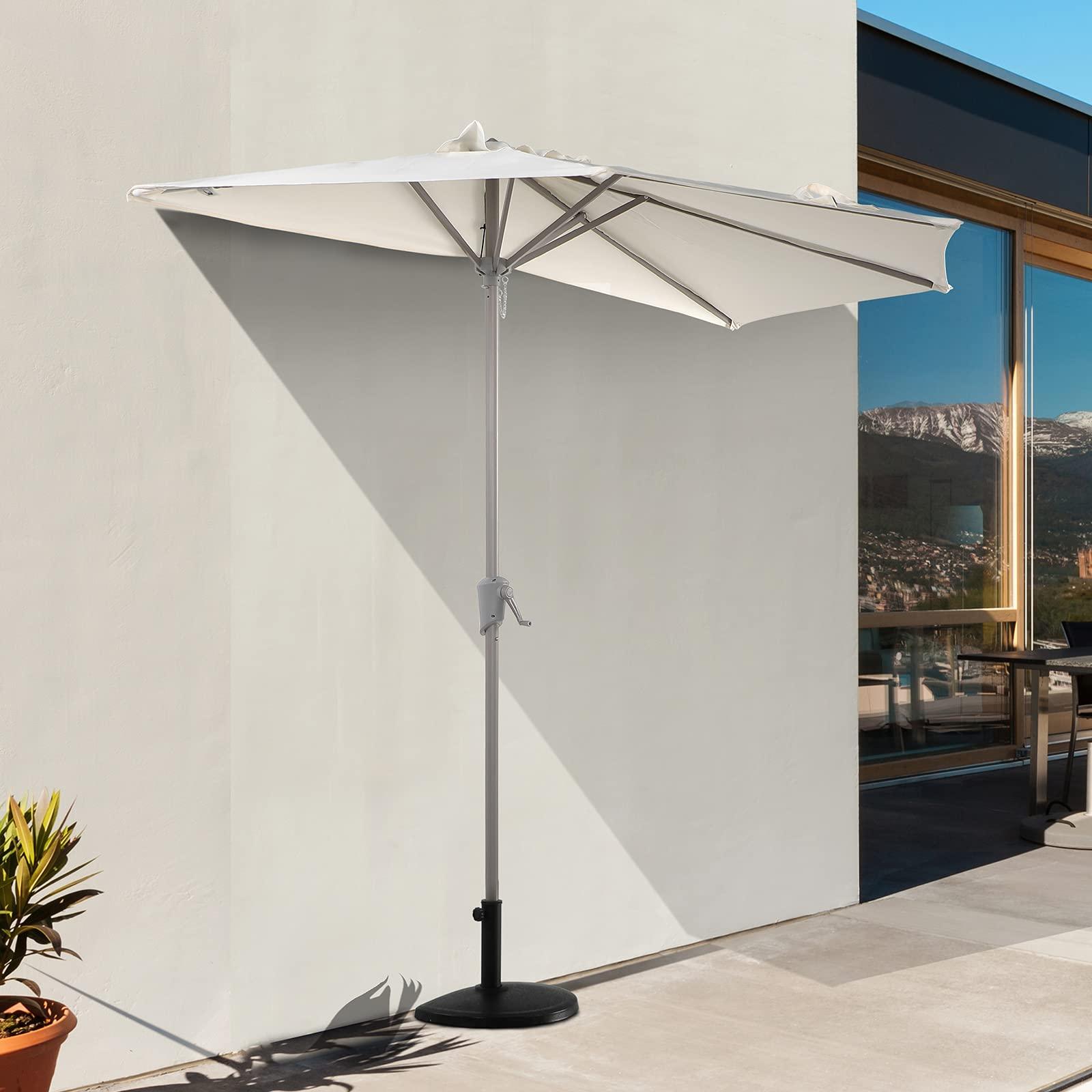 - Unique Design-The half round designed umbrella brings a unique appearance to fit the space, perfect for tight spaces that need shade and can be pushed flush up against a wall or glass door