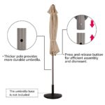 - Sturdy Construction– Our half patio umbrella is made of 5 supporting steel ribs and a steel pole, rust-free powder coated provides trusted durability while relaxing outdoors