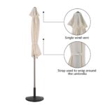 - Durable Fabric-Made of a water/UV-resistant, breathable, light filtering polyester fabric, with a steel frame and air vent that provides optimal wind resistance to keep your umbrella in place. Seamed ribbon for better protection when it is closed