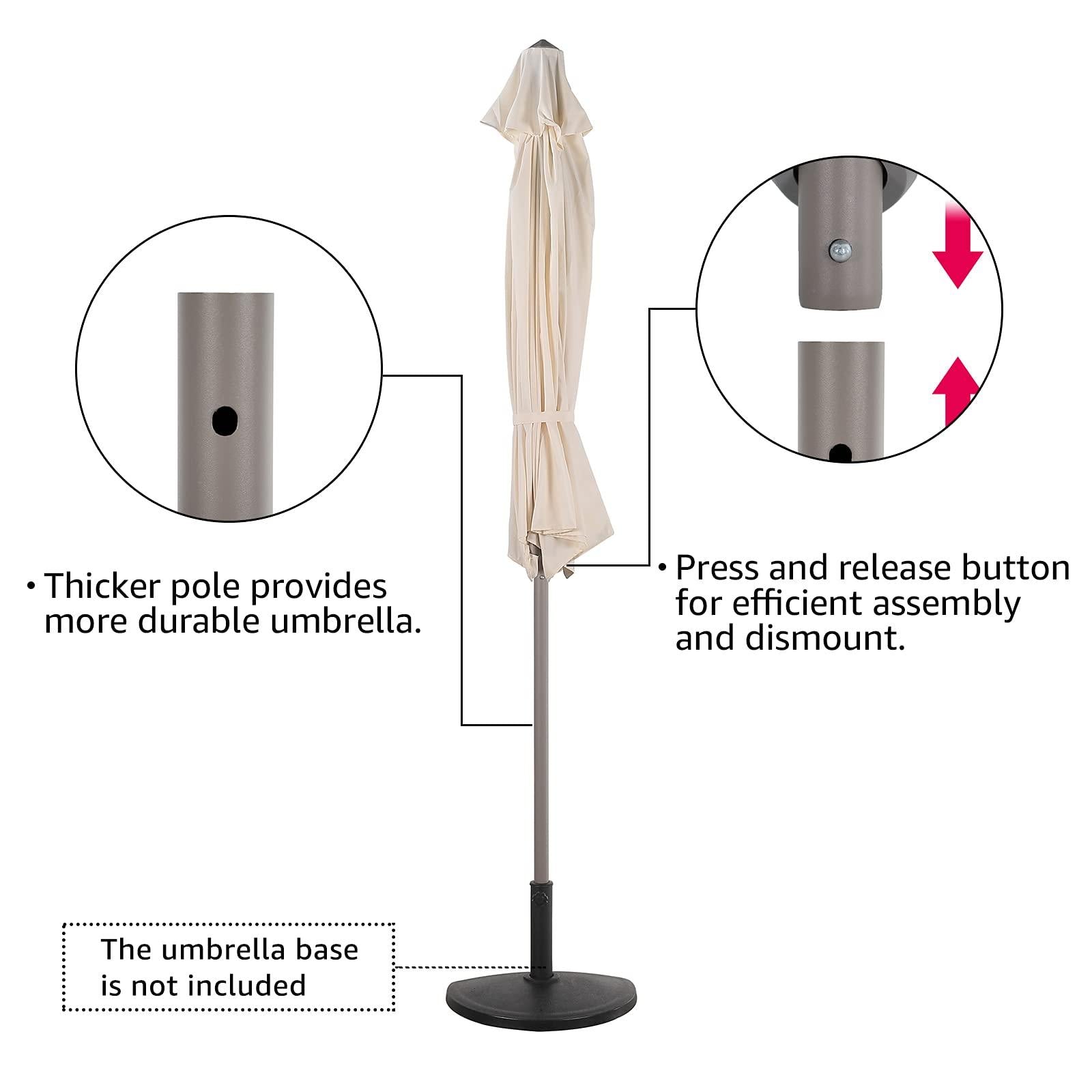 Special Thickened PoleOur rust-free powder coated steel pole is thicker than normal poles, which can provide more powerful support for our half umbrella. |