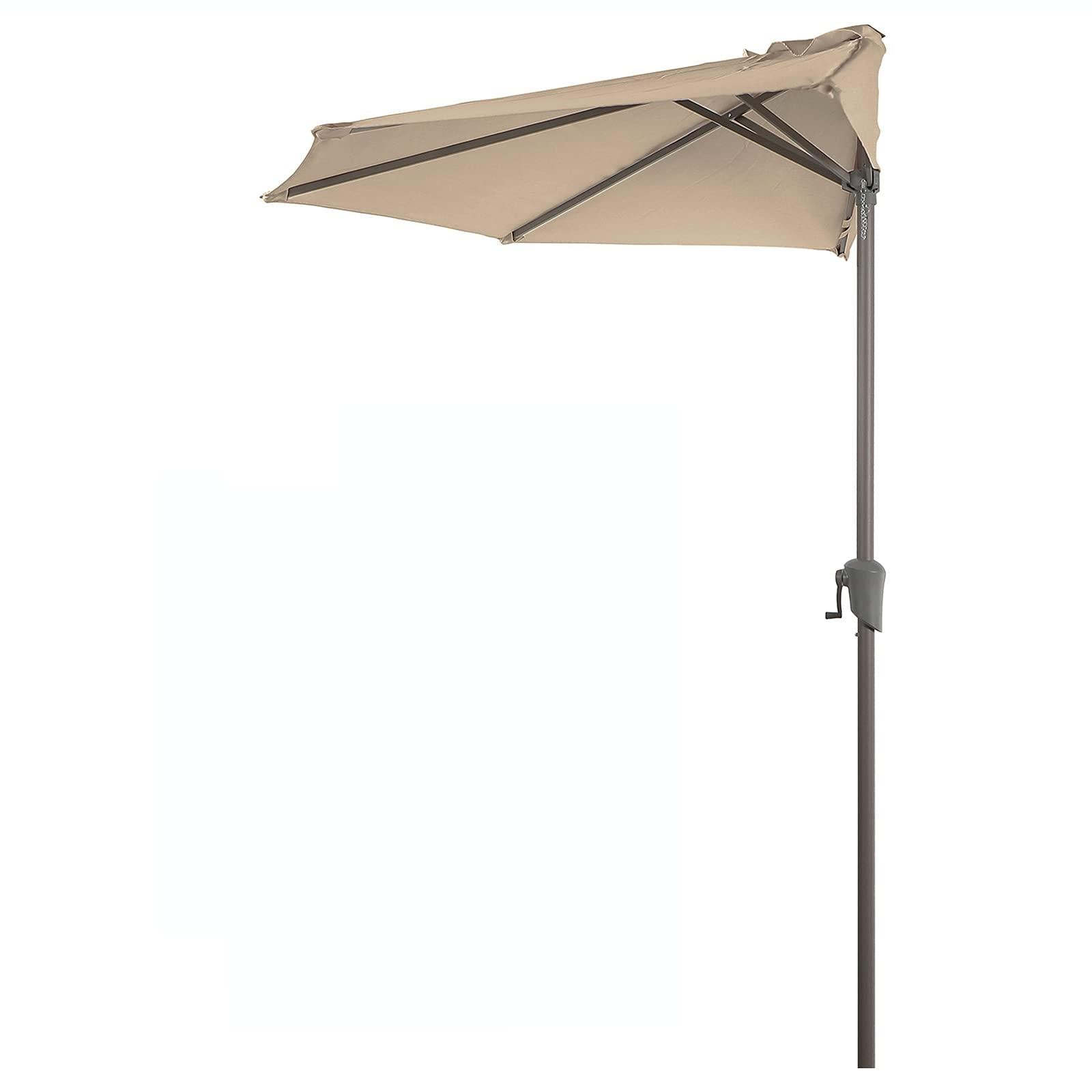 9′ Half Round Patio Umbrella with Crank, 3 Colors