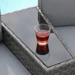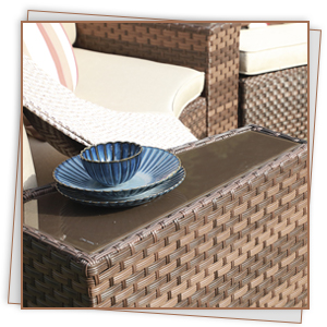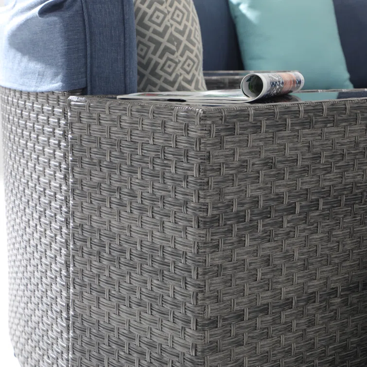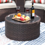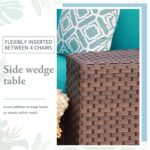 - 【Four Side Tables】 – The sophisticated wicker design side table is hand woven by resin wicker and powder coated steel framed for seasonal outdoor use. It is a great addition to the curved outdoor sectional to keep books, drinks, foods and small plates within reach. The tempered glass table top requires low maintenance.