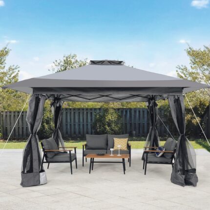 13’x13’ Pop Up Gazebo With Mosquito Netting Outdoor Canopy Tent Shade, Metal Frame