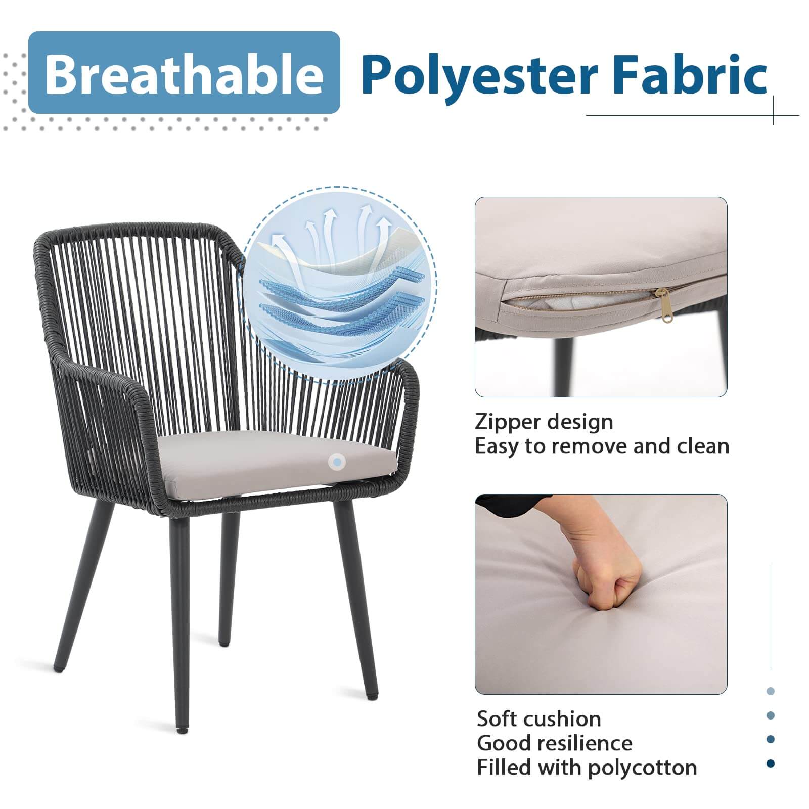 - [Airy Design]: The airy design of the outdoor wicker chair set and its warm combination of handwoven PE rope rattan, will immediately create an intimate and natural atmosphere on your patio. Enjoy a pair of all-weather seats and back for contemporary tableside comfort.