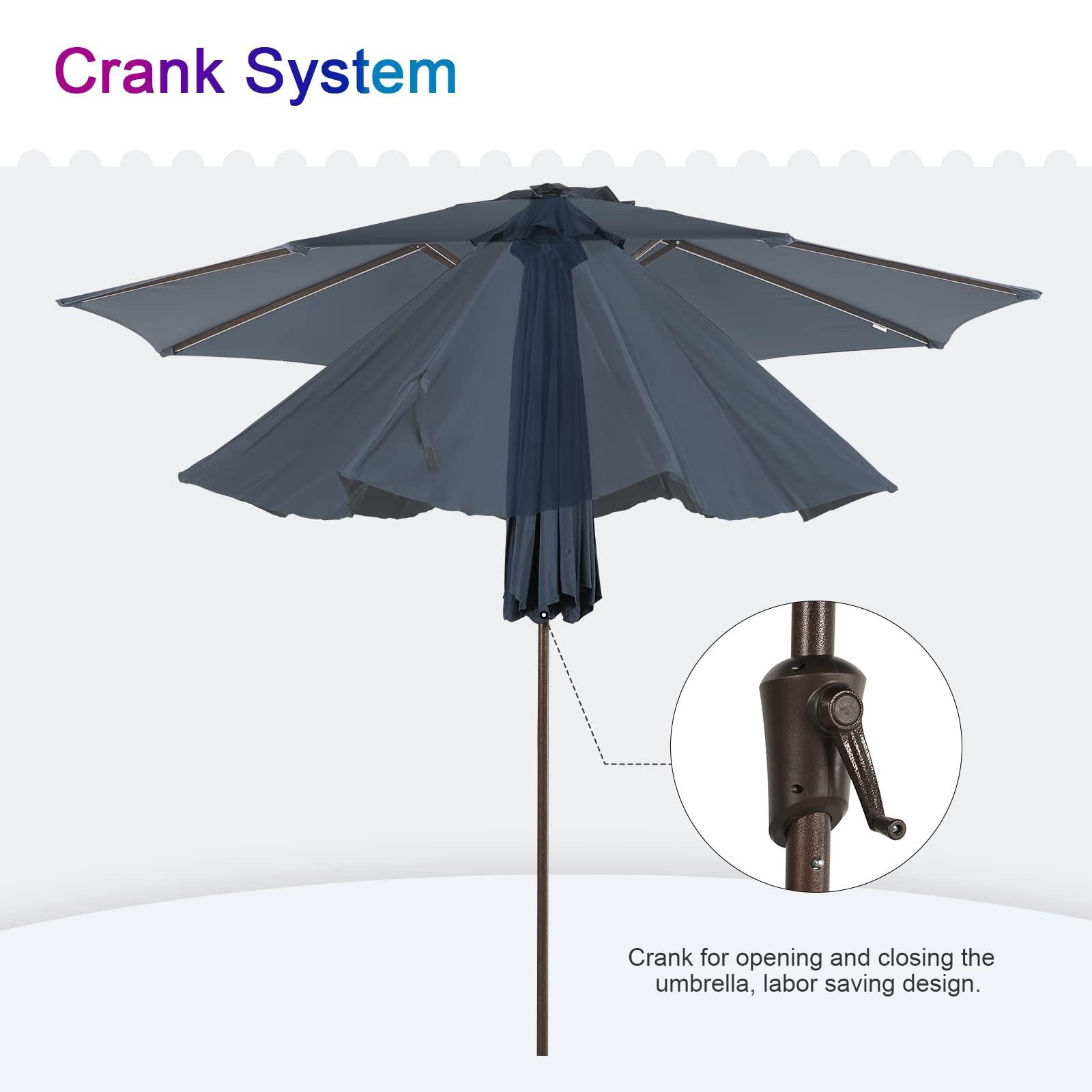 9ft Patio Umbrella with LED Lights Polyester Umbrella with Tilt and Crank, 3 Colors